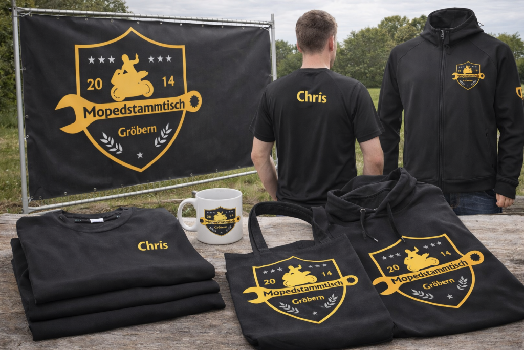 Für diesen Mopedstammtisch haben wir einen eigenständigen Markenauftritt entwickelt. Dazu gehörten der Logoentwurf, die Gestaltung der Teamshirts sowie die Erstellung von Bannern für Veranstaltungen und Ausfahrten.